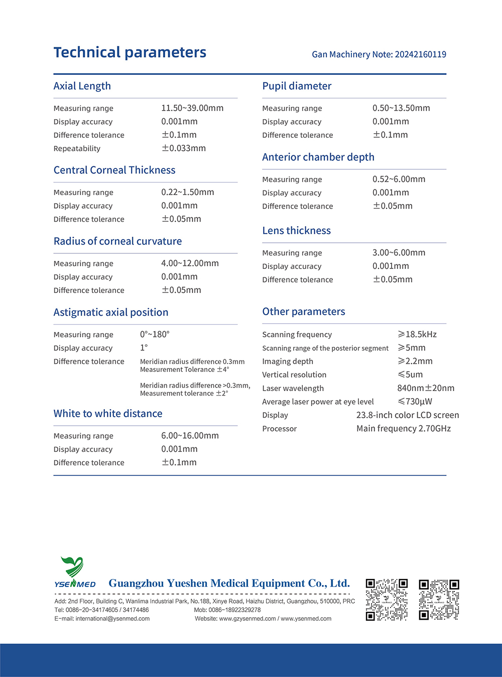 Medical Ophthalmic Optical Biometer YSENT-BM20